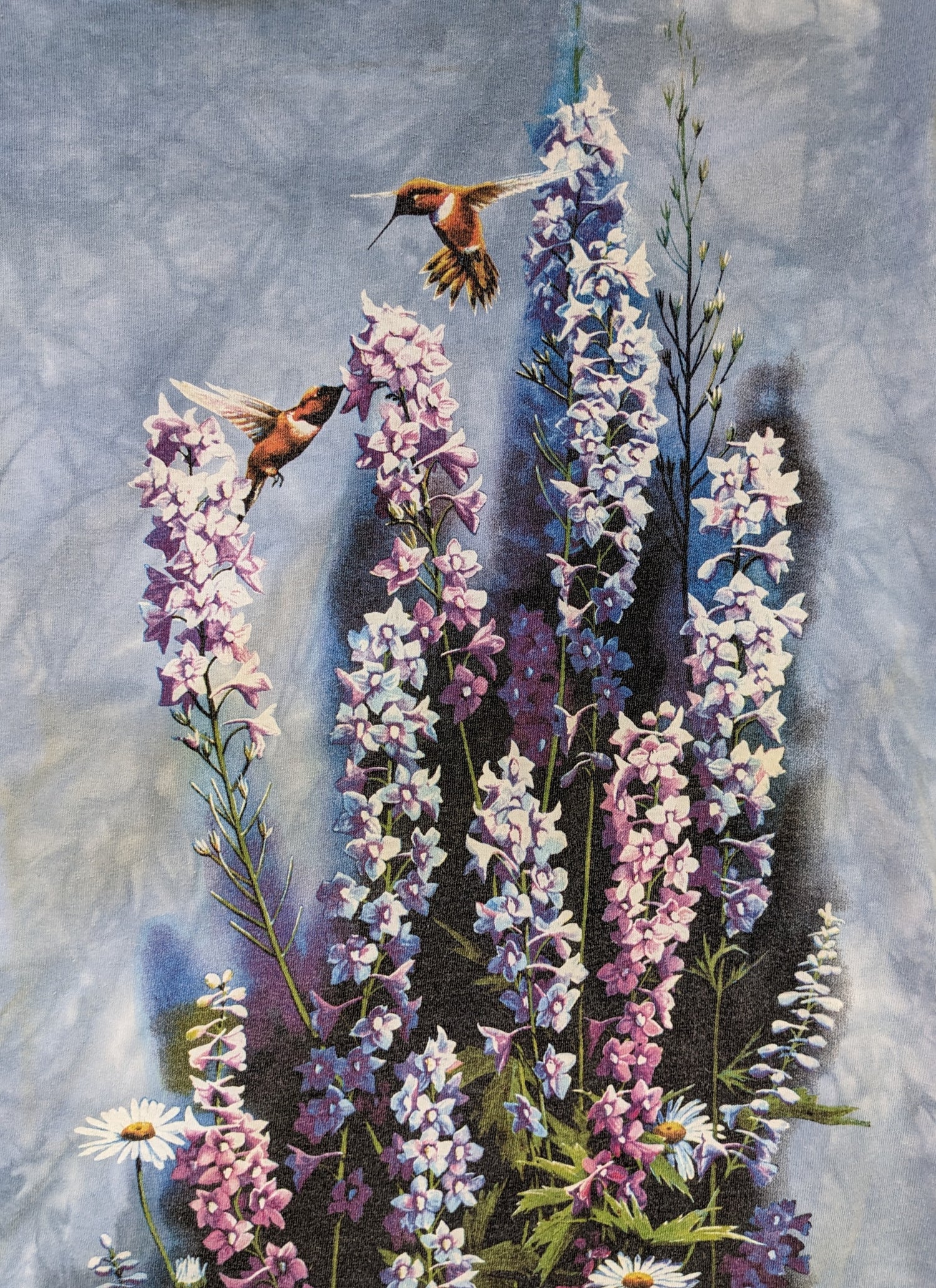 - Description: Pale Blue Tie Dye Hummingbird Shirt by the Mountain